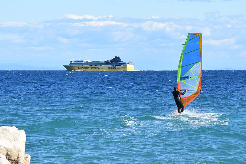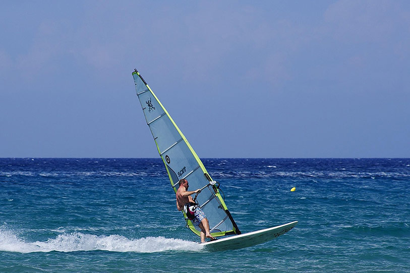 In pochissime ore imparerete le basi del windsurf, come l’equilibrio, direzione del vento e le tutte le manovre di base, virata e strambata su tavola con deriva. Le lezioni di windsurf a Zante hanno inizialmente una formazione teorica sull’ asciutto di 20-30 minuti in cui vengono spiegate le varie parti che compongono il windsurf e la posizione da tenere sulla tavola.